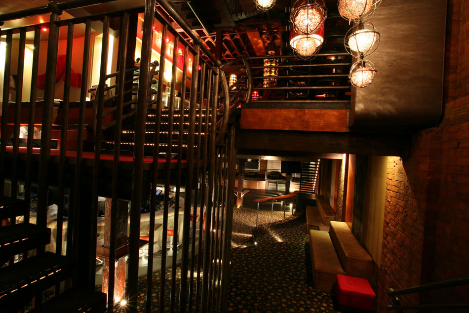 A mid-19th century warehouse was the starting point for another collaboration; creating a layout that would allow 5 new levels to work harmoniously as an exciting journey. Voids were cut out of the existing floors, and ornate staircases designed to link the new areas, and 5 bars.
